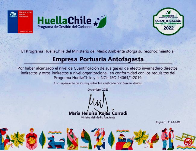 Debido a una sobresaliente gestión ambiental, por cuarto año consecutivo el programa Huella Chile 2022 del Ministerio de Medio Ambiente otorgó el reconocimiento “Cuantificación” a la Empresa Portuaria Antofagasta (EPA), certificación que indica que la empresa ha logrado cumplir nuevamente con éxito los requisitos necesarios de medición de gases de efecto invernadero. Junto a ello,…